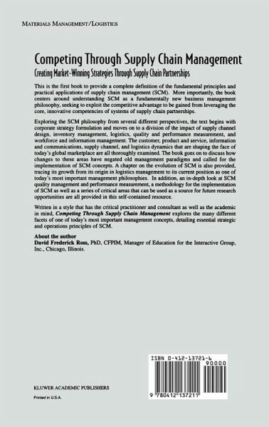 SCM is one of the hottest topics in manufacturing and distribution, and like JIT and TQC it requires a corporate commitment. This book provides both fundamental principles of SCM as well as a set of guidelines to assist in practical application of SCM. It will be one of the first books on the market that deals exclusively with SCM and its application. Readers in the academic, management sciences, sales, marketing and government environments will find this book of particular interest.