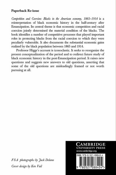 Competition and Coercion: Blacks in the American economy, 1865 1914 is a reinterpretation of black economic history in the half-century after Emancipation.