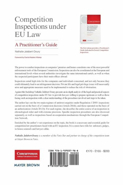 The power to conduct inspections at companies' premises and homes constitutes one of the most powerful enforcement tools of the European Commission. Inspection can also be coordinated at the European and international levels when several authorities investigate the same international cartels, as well as when the suspected participants have their main offices abroad. Inspections entail high risks for the companies and individuals concerned, and not only because they could ultimately lead to an infringement decision. Private life and legal privilege issues will necessarily arise and appropriate measures need to be implemented to reduce the risk of obstruction. Against this backdrop Nathalie Jalabert-Doury presents an in-depth analysis of the legal and practical aspects of competition inspections under EU law to provide lawyers willing to prepare upstream as well as those facing such an inspection with a clear understanding of the procedures involved and steps to be taken. The author lays out the two main regimes of antitrust enquiries under Regulation 1/2003: inspections carried out on the basis of a Commission decision (Article 20(4)), and those operated on the basis of an authorization (Article 20 (3)). For each regime, she describes the entire course of an inspection in chronological order and with extreme precision. Specific inspection procedures are also discussed separately, as well as inspections based on cooperation mechanisms through the European Competition Network. Enriched by the author's vast experience on the topic, the book is a necessary and essential guide for competition law practitioners faced with an EU inspection. It is a must-have title for enforcers, judges, in-house counsels and lawyers alike.