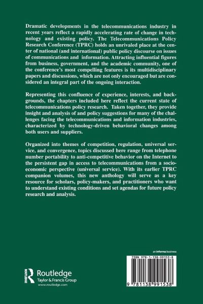 The current state of research in telecommunications policy, covering competition, regulation, and integration of media carriers. For scholars, policy makers, and businesspeople involved with future direction and policy decisions in telecommunications