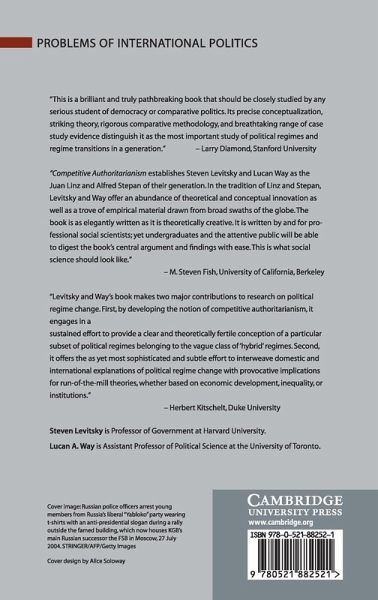 'This landmark contribution to the comparative study of political regimes will be widely read and cited. In an epic act of theoretical synthesis, Levitsky and Way weave careful empirical research on three-dozen countries across five world regions into a convincing account of patterns of regime change. In distinguishing democratic transitions from a range of authoritarian outcomes, they reach nuanced conclusions about the relative explanatory influence of international factors (linkage and leverage) and domestic power politics (rulers versus oppositions). Above all, they help us understand how autocrats learn to live with elections. Strongly recommended.' Michael Bratton, University Distinguished Professor of Political Science and African Studies, Michigan State University