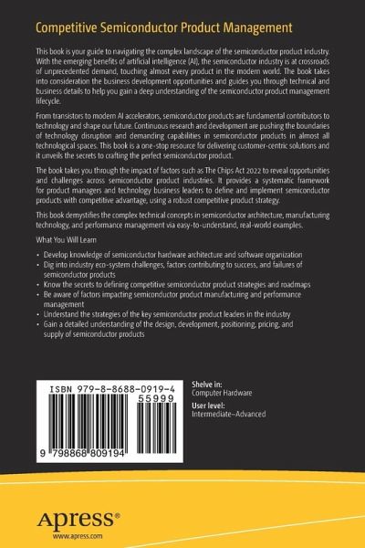 The book takes you through the impact of factors such as The Chips Act 2022 to reveal opportunities and challenges across semiconductor product industries. It provides a systematic framework for product managers and technology business leaders to define and implement semiconductor products with competitive advantage, using a robust competitive product strategy.