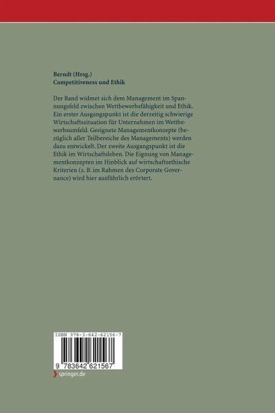 Erster Teil CompetitivenessCompetitiveness.- Anforderungen an das Management unter dem Aspekt von Competitiveness und Ethics in der Gegenwart.- Die drei goldenen Regeln der Strategie.- Strategische Wettbewerbsvorteile und Strategie der Wettbewerbsf ä higkeit.- Erfolgreiches Innovationsmanagement.- Zweiter Teil Wirtschaftsethik.- Wirtschaft und Ethik - aktueller denn je!.- Ethics Ratings: The Case of Five Leading U.S. Investment Banks.- Corporate Responsibility, Ethical Leadership and Global Competitiveness.- Cross-cultural Knowledge Management: Assuring Competitive Advantage through Knowledge, Strategies, Culture, Education & Training.- Dritter Teil Management Education.- Wettbewerbsfähigkeit und Ethik in der International Business School.- Culture Change: Unintended Consequences and Ethical Issues.- Vierter Teil Marketing Management.- Ethic is Good Business: The Impact of Ethics on the Value Profit Chain.- Competitiveness durch starke Brands.- Fünfter Teil Finance Management.- "Weiche" Erfolgsfaktoren bei der Auswahl von Vermögensverwaltern durch institutionelle Anleger.- Sechster Teil Operations Management.- Leadership-Controlling sichert nachhaltigen Unternehmenserfolg.- Win-Win Partnerships in Sourcing: Empirical Evidence from Germany.- Siebter Teil Human Resources Management.- Global Ethics and International Human Resource Management.- Ethische Fragen der Persönlichkeitsbeurteilung im Rahmen der Personalselektion.- 307.