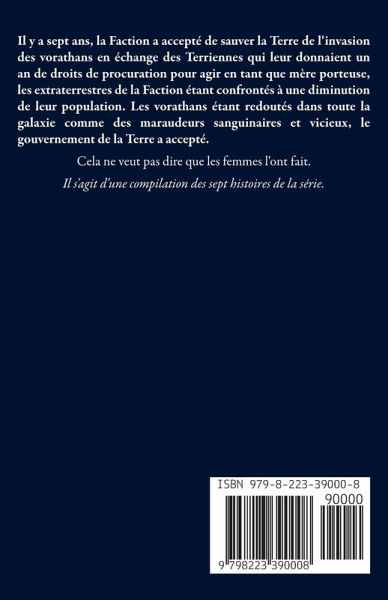 Il y a sept ans, la Faction a accepté de sauver la Terre de l'invasion des vorathans en échange des Terriennes qui leur donnaient un an de droits de procuration pour agir en tant que mère porteuse, les extraterrestres de la Faction étant confrontés à une diminution de leur population. Les vorathans étant redoutés dans toute la galaxie comme des maraudeurs sanguinaires et vicieux, le gouvernement de la Terre a accepté. Cela ne veut pas dire que les femmes l'ont fait. Il s'agit d'une compilation des sept histoires de la série. Parfois, on a envie de lire l'histoire d'un empire extraterrestre et de ses innombrables rebondissements, de se plonger dans des centaines de pages d'intrigues. Et parfois, vous voulez sauter les fioritures et passer à l'événement principal. Juno et Aurelia ont le plaisir de vous présenter une série de romances courtes et torrides sur des femmes humaines intactes qui font des bébés avec leurs véritables compagnons extraterrestres.