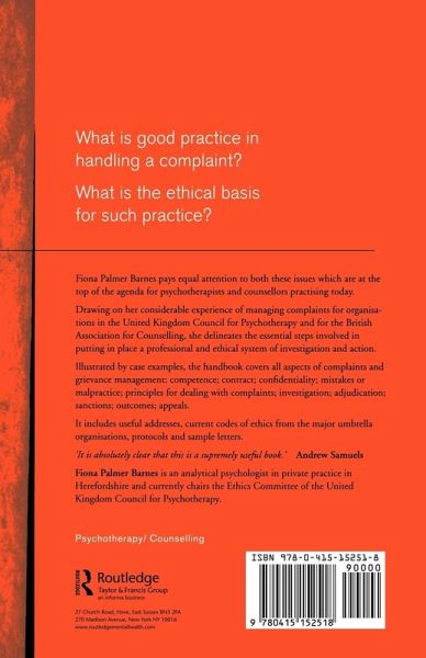 What is good practice when handling a complaint? What is the ethical basis of such practice? Fiona Palmer-Barnes pays equal attention to both these issues which are essential for psychotherapists and counsellors practising today. Drawing on her considerable experience of managing complaints for both the British Association for Counselling and the United Kingdom Council for Psychotherapy, she delineates the basics for putting in place a professional and ethical system of investigation and action. Illustrated by case examples, the handbook covers all aspects of complaints and grievance management: * competence * contract * confidentiality * mistakes or malpractice * principles for dealing with complaints * investigation * adjudication * sanctions * outcomes * appeals It includes useful addresses, current codes of ethics from major umbrella organizations, protocols and sample letters.