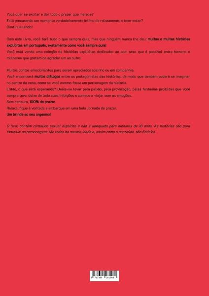 Você quer se excitar e dar todo o prazer que merece?Está procurando um momento verdadeiramente íntimo de relaxamento e bem-estar?Então continue lendo!Com este livro, você terá tudo o que sempre quis e que ninguém nunca lhe deu: muitas e muitas histórias explícitas em português, exatamente como você sempre quis!Você tem diante de si uma coleção de histórias explícitas dedicadas ao bom sexo que é possível entre homens e mulheres que gostam de agradar um ao outro. Muitos contos excitantes para experimentar sozinho ou acompanhado.Você encontrará muitos diálogos entre os protagonistas das histórias, de modo que também poderá se imaginar no centro da cena, como se você mesmo fosse um personagem da história.Então, o que está esperando? Deixe-se levar pela paixão, pela provocação, pelas fantasias proibidas que você sempre teve, deixe de lado suas inibições e comece a viajar com as emoções.Sem censura, 100% de prazer.Relaxe, fique à vontade e embarque em uma bela jornada de prazer.Um brinde ao seu orgasmo!