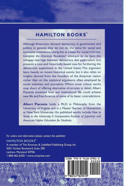 Chapter 1 Preface Chapter 2 Why Complete the American Revolution? Part I: A Common Sense Justification: The American Revolution Isn't Complete?!; 6 Reasons to Complete the American Revolution: Reason 1: No More 9-11's, Reason 2: No More Corporate Scandals, Reason 3: No M Chapter 3 How to Complete the American Revolution: Democracy and Politics: Isn't our Politics Democratic Already?; Closer to the Participatory Ideal; "Improved" Representation; Restructuring the Government According to Improved Representation; Combining Parti Chapter 4 How to Complete the American Revolution: Democracy and the Economy: The "Ideal" Democratic Economy; Capitalism over Socialism, but Neither is Democratic; So What's Wrong with the Current American System; The Role of Government in the Economy; The Co Chapter 5 How to Complete the American Revolution: Democracy and Formal Education: Making Universities Democratic; Making Primary and Secondary Schools Democratic; Democracy and the Goal of Primary and Secondary Education; Making Good "Entertainers" Part One: Chapter 6 Why Complete the American Revolution? Part II: A Philosophical Justification: Shopping and the "Logic" of Choice Making; The American Revolution and Value Judgments; Methods of Making Value Judgments; Defending the Democratic Method Part One: Chapter 7 Appendix: A Political Party Program Chapter 8 Index