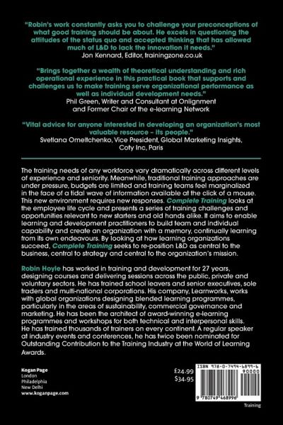 The training and development needs of any workforce vary dramatically between the generations and levels even so far as the style of communication needed to be effective.At the same time training budgets are tighter than ever before and training departments are increasing marginalised as informal learning in a cyber workplace grows. So how can you tackle the challenges of this environment effectively? Complete Training looks at the employee life cycle and posits a series of training challenges and opportunities relevant across each stage - from new hires to the éminence grise of the organisation - the objective is to enable learning and development practitioners to build individual capability and an organisation with a memory, continually learning from its own endeavours. By looking at how learning organisations succeed, complete training seeks to re-position L&D as central to the business, central to strategy and central to the organization's mission.