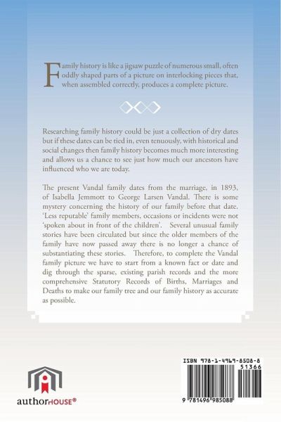 Researching family history could be just a collection of dry dates but if these dates can be tied in, even tenuously, with historical and social changes then family history becomes much more interesting and allows us a chance to see just how much our ancestors have influenced who we are today. The present Vandal family dates from the marriage, in 1893, of Isabella Jemmott to George Larsen Vandal. There is some mystery concerning the history of our family before that date. 'Less reputable' family members, occasions or incidents were not 'spoken about in front of the children'. Several unusual family stories have been circulated but since the older members of the family have now passed away there is no longer a chance of substantiating these stories. Therefore, to complete the Vandal family picture we have to start from a known fact or date and dig through the sparse, existing parish records and the more comprehensive Statutory Records of Births, Marriages and Deaths to make our family tree and our family history as accurate as possible.