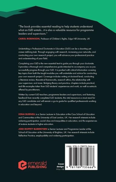 This is an essential text for students pursuing the Doctor of Education programme (EdD). Written by EdD teachers and course leaders, it covers essential elements of the EdD including reading and writing at doctoral level, planning and executing research, and much more, and will accompany students as they successfully progress through their EdD.