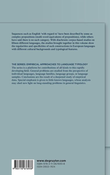The chapters of this volume provide not only a working definition of such constructions, but also a description of complex adpositions and other complex nominal relators in a variety of European languages, both Indo-European and non-Indo-European, including some languages for which this phenomenon had received little attention, such as Breton and Albanian. Building on synchronic and diachronic corpus-based investigations, the authors show commonalities and specificities of these linguistic items across languages, trying to explain why and how they emerged.