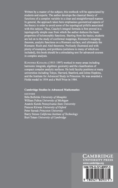 Written by a master of the subject, this text will be appreciated by students and experts for the way it develops the classical theory of functions of a complex variable in a clear and straightforward manner. In general, the approach taken here emphasises geometrical aspects of the theory in order to avoid some of the topological pitfalls associated with this subject. Thus, Cauchy's integral formula is first proved in a topologically simple case from which the author deduces the basic properties of holomorphic functions. Starting from the basics, students are led on to the study of conformal mappings, Riemann's mapping theorem, analytic functions on a Riemann surface, and ultimately the Riemann-Roch and Abel theorems. Profusely illustrated, and with plenty of examples, and problems (solutions to many of which are included), this book should be a stimulating text for advanced courses in complex analysis.