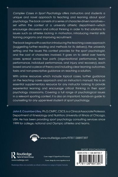 Complex Cases in Sport Psychology offers instructors and students a unique and novel approach to teaching and learning about sport psychology. The book consists of a series of character-driven narratives-set within the context of a university athletic department-which encourage discussion and critical thinking in order to find solutions to issues such as athletes lacking in motivation, introducing mental skills training programs, and improving recruitment. With a companion website which includes topical cases, further guidance on the teaching cases approach and an instructor's manual, this is an essential supplementary resource for any instructor looking to provide experiential learning and encourage critical thinking in their sport psychology classrooms. Covering a full range of psychological issues in a relevant sporting context, it's also an important, hands-on guide to counselling for any upper-level student of sport psychology.