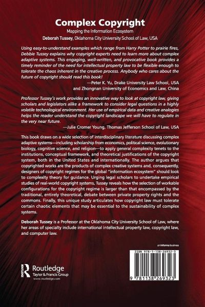 This book draws on a wide selection of interdisciplinary literature discussing complex adaptive systems, to apply general complexity tenets to the institutions, conceptual framework, and theoretical justifications of the copyright system, both in the United States and internationally. The author argues that designers of copyright regimes should look to complexity theory for guidance, and that copyright law must tolerate chaotic elements that may be essential to the sustainability of complex systems.