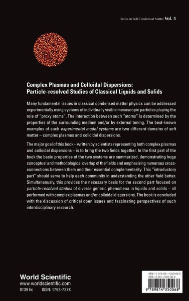 Many fundamental issues in classical condensed matter physics can be addressed experimentally using systems of individually visible mesoscopic particles playing the role of ¿proxy atoms¿. The interaction between such ¿atoms¿ is determined by the properties of the surrounding medium and/or by external tuning. The best-known examples of such experimental model systems are two different domains of soft matter ¿ complex plasmas and colloidal dispersions.The major goal of this book ¿ written by scientists representing both complex plasmas and colloidal dispersions ¿ is to bring the two fields together. In the first part of the book the basic properties of the two systems are summarized, demonstrating huge conceptual and methodological overlap of the fields and emphasizing numerous cross-connections between them and their essential complementarity. This ¿introductory part¿ should serve to help each community in understanding the other field better. Simultaneously, this provides the necessary basis for the second part focused on particle-resolved studies of diverse generic phenomena in liquids and solids ¿ all performed with complex plasmas and/or colloidal dispersions. The book is concluded with the discussion of critical open issues and fascinating perspectives of such interdisciplinary research.