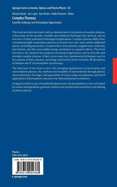 This book provides the reader with an introduction to the physics of complex plasmas, a discussion of the specific scientific and technical challenges they present and an overview of their potential technological applications.