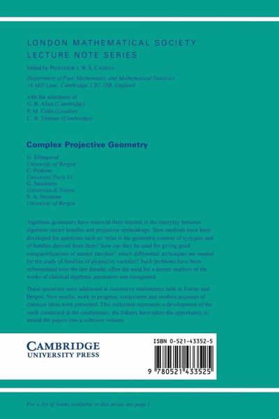 Algebraic geometers have renewed their interest in the interplay between algebraic vector bundles and projective embeddings. New methods have been developed for questions such as: what is the geometric content of syzygies and of bundles derived from them? how can they be used for giving good compactifications of natural families? which differential techniques are needed for the study of families of projective varieties? Such problems have often been reformulated over the last decade; often the need for a deeper analysis of the works of classical algebraic geometers was recognised. These questions were addressed at successive conferences held in Trieste and Bergen. New results, work in progress, conjectures and modern accounts of classical ideas were presented. This collection represents a development of the work conducted at the conferences; the Editors have taken the opportunity to mould the papers into a cohesive volume.