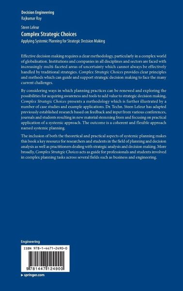 Effective decision making requires a clear methodology, particularly in complex, globally relevant situations. Institutions and companies in all disciplines and sectors are faced with increasingly multi-faceted areas of uncertainty which cannot always be effectively handled by traditional strategies. Complex Strategic Choices provides clear principles and methods which can guide and support strategic decision to face modern challenges.