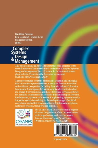 These proceedings cover the most recent trends in the emerging field of complex systems sciences & practices from an industrial and academic perspective, including the main industrial domains (aeronautic & aerospace, defense & security, electronics & robotics, energy & environment, healthcare & welfare services, software & e-services, transportation), scientific & technical topics (systems fundamentals, systems architecture & engineering, systems metrics & quality, system is modeling tools) and system types (artificial ecosystems, embedded systems, software & information systems, systems of systems, transportation systems).