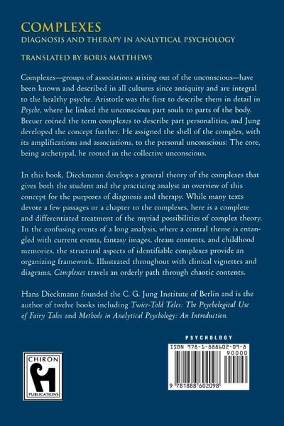 Complexes—groups of associations arising out of the unconscious—have been known and described in all cultures and are integral to the healthy psyche. Breuer first coined the term complexes to describe part personalities. Jung developed the concept further, assigning the shell of the complex with its amplifications and associations to the personal unconscious, and postulating a core that is archetypal in nature and rooted in the collective unconscious. In this book, Dieckmann fills a lacuna by developing a general theory of the complexes that gives both the student and the practicing analyst an overview and understanding of this concept for the purposes of diagnosis and therapy. Illustrated throughout with clinical vignettes and diagrams, Complexes provides a clear and orderly path through the chaotic contents of analysis. Hans Dieckmann, M.D., was president of the International Association for Analytical Psychology. He founded the C. G. Jung Institute of Berlin, where he taught for a number of years. A patron of the Cape of Good Hope Center in South Africa and the C. G. Jung Institute of Perth, Dieckmann is the author of many articles and books, among them Twice-Told Tales: The Psychological Use of Fairy Tales.