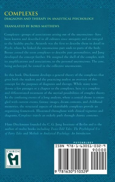 Complexes—groups of associations arising out of the unconscious—have been known and described in all cultures and are integral to the healthy psyche. Breuer first coined the term complexes to describe part personalities. Jung developed the concept further, assigning the shell of the complex with its amplifications and associations to the personal unconscious, and postulating a core that is archetypal in nature and rooted in the collective unconscious. In this book, Dieckmann fills a lacuna by developing a general theory of the complexes that gives both the student and the practicing analyst an overview and understanding of this concept for the purposes of diagnosis and therapy. Illustrated throughout with clinical vignettes and diagrams, Complexes provides a clear and orderly path through the chaotic contents of analysis. Hans Dieckmann, M.D., was president of the International Association for Analytical Psychology. He founded the C. G. Jung Institute of Berlin, where he taught for a number of years. A patron of the Cape of Good Hope Center in South Africa and the C. G. Jung Institute of Perth, Dieckmann is the author of many articles and books, among them Twice-Told Tales: The Psychological Use of Fairy Tales.