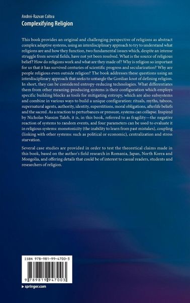 This book provides an original and challenging perspective of religions as abstract complex adaptive systems, using an interdisciplinary approach to try to understand what religions are and how they function, two fundamental issues which, despite an intense struggle from several fields, have not yet been resolved. What is the source of religious belief? How do religions work and what are they made of? Why is religion so important for us that it has survived centuries of scientific progress and secularization? Why are people religious even outside religion? The book addresses these questions using an interdisciplinary approach that seeks to untangle the Gordian knot of defining religion. In short, they can be considered entropy-reducing technologies. What differentiates them from other meaning-producing systems is their configuration which employs specific building blocks as tools for mitigating entropy, which are also subsystems and combine in various ways to build a unique configuration: rituals, myths, taboos, supernatural agents, authority, identity, superstitions, moral obligations, afterlife beliefs and the sacred. As a reaction to perturbances or pressure, systems can collapse. Inspired by Nicholas Nassim Taleb, it is, in this book, referred to as fragility-the negative reaction of systems to random events, and four parameters can be used to evaluate it in religious systems: monotonicity (the inability to learn from past mistakes), coupling (linking with other systems: such as political or economic), centralization and stress starvation.