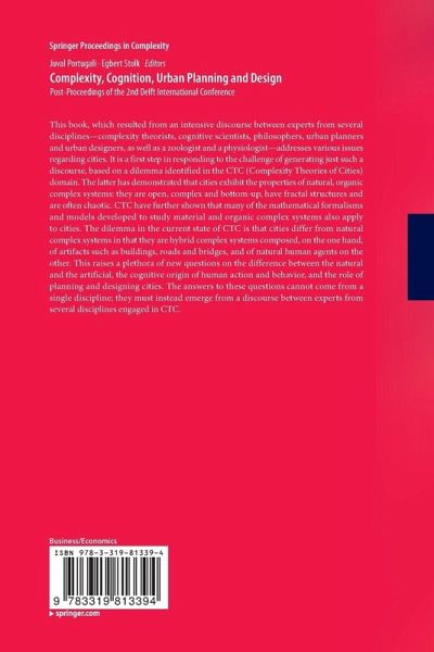 This book, which resulted from an intensive discourse between experts from several disciplines - complexity theorists, cognitive scientists, philosophers, urban planners and urban designers, as well as a zoologist and a physiologist - addresses various issues regarding cities. It is a first step in responding to the challenge of generating just such a discourse, based on a dilemma identified in the CTC (Complexity Theories of Cities) domain. The latter has demonstrated that cities exhibit the properties of natural, organic complex systems: they are open, complex and bottom-up, have fractal structures and are often chaotic. CTC have further shown that many of the mathematical formalisms and models developed to study material and organic complex systems also apply to cities. The dilemma in the current state of CTC is that cities differ from natural complex systems in that they are hybrid complex systems composed, on the one hand, of artifacts such as buildings, roads and bridges, and ofnatural human agents on the other. This raises a plethora of new questions on the difference between the natural and the artificial, the cognitive origin of human action and behavior, and the role of planning and designing cities. The answers to these questions cannot come from a single discipline; they must instead emerge from a discourse between experts from several disciplines engaged in CTC.