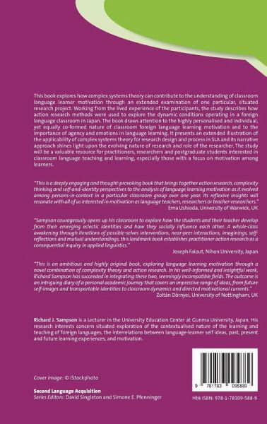 This book explores how complex systems theory can contribute to the understanding of classroom language learner motivation through an extended examination of the dynamic conditions operating in a foreign language classroom in Japan. Its reflexive, narrative approach shines light on the evolving nature of research and role of the researcher.