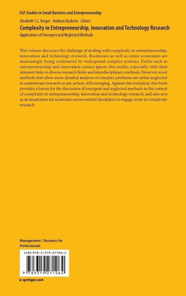 Thisvolume discusses the challenge of dealing with complexity in entrepreneurship,innovation and technology research. Businesses as well as entire economies areincreasingly being confronted by widespread complex systems. Fields such asentrepreneurship and innovation cannot ignore this reality, especially withtheir inherent links to diverse research fields and interdisciplinary methods.However, most methods that allow more detailed analyses of complex problems areeither neglected in mainstream research or are, at best, still emerging.Against this backdrop, this book provides a forum for the discussion ofemergent and neglected methods in the context of complexity inentrepreneurship, innovation and technology research, and also acts as aninspiration for academics across related disciplines to engage more incomplexity research.