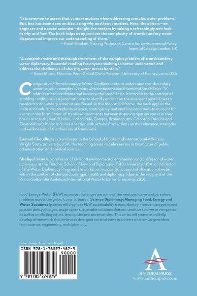'Complexity of Transboundary Water Conflicts' seeks to understand transboundary water issues as complex systems with contingent conditions and possibilities. To address those conditions and leverage the possibilities it introduces the concept of enabling conditions as a pragmatic way to identify and act on the emergent possibilities to resolve transboundary water issues.