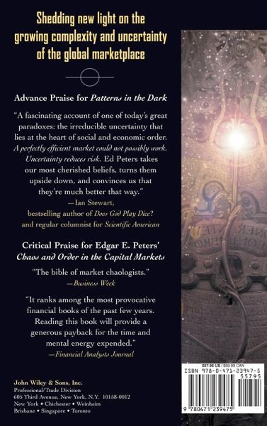 "Edgar E. Peters's latest book, Patterns in the Dark: Understanding Risk and Financial Crisis with Complexity Theory is not merely an autobiographical indulgence. The bulk of the book is Peters's lucent analysis expounding on the need for uncertainty. Whether he uses the example of genetic algorithms to show how randomness can lead a process to a goal even when the ultimate path is unknown, or if he simply shows how David Bowie's creation of Ziggie Stardust illustrates the integration of two seemingly contrary elements in the creative process (with a nod toward uncertainty as a requirement for stability), Peters's always seems to provide compelling insight into how global structure and local randomness interact.