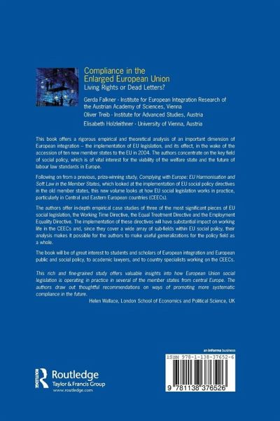 This book offers a rigorous empirical and theoretical analysis of an important dimension of European integration - the implementation of EU legislation and its effect in the wake of the accession of ten new member states to the EU in 2004. The authors concentrate on the key field of social policy, which is of vital interest for the viability of the welfare state and the future of labour law standards in Europe. Following on from a previous prize-winning study, Complying with Europe: EU Harmonization and Soft Law in the Member States, this new volume looks at how EU social legislation works in practice, particularly in Central and Eastern European countries. The authors offer in-depth empirical case studies of three of the most significant pieces of EU social legislation: the Working Time Directive, the Equal Treatment Directive and the Employment Equality Directive. Their analysis makes it possible for the authors to make useful generalizations for the policy field as a whole.
