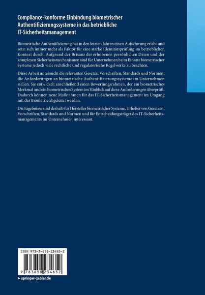 Diese Arbeit untersucht die relevanten Gesetze, Vorschriften, Standards und Normen, die Anforderungen an biometrische Authentifizierungssysteme im Unternehmen stellen. Sie entwickelt anschließend einen Bewertungsrahmen, der ein biometrisches Merkmal und ein biometrisches System im Hinblick auf diese Anforderungen überprüft. Dadurch können neue Maßnahmen für das IT-Sicherheitsmanagement im Umgang mit der Biometrie abgeleitet werden.