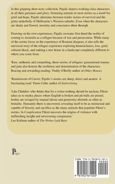 In this gripping short story collection, Pajalic depicts working-class characters in all their gutsiness and glory. Featuring animals in most stories as a motif for grief and hope, Pajalic alternates between tender stories of survival and the gritty underbelly of Melbourne's Western suburbs. Even when his characters are shady and flawed, morality and conscience shine through. Drawing on his own experiences, Pajalic recreates first-hand the reality of coming to Australia as a refugee because of war and persecution. While many of the stories focus on the experience of Bosnian diaspora, it also tells the universal story of the refugee experience exploring homesickness, loss, grief, cultural shock, and making a new home in a landscape completely different to where you come from. 'Raw, authentic and compelling, these stories of refugees' generational trauma and pain also honour the resilience and determination of the characters. Bracing and rewarding reading.' Paddy O'Reilly author of Other Houses 'Reminiscent of Carver, Pajalic's stories are sharp, direct and austere. A fascinating read.' Ennis Cehic author of Sadvertising 'Like Chekhov who thinks that for a writer nothing should be unclean, Fikret takes us to murky places where English is broken and pit bulls are prized; bodies are ravaged by manual labour and generosity abounds as often as brutality. Humanity there is uncovered, revealing itself to be as instinctual and capable of ferocity and sacrifice as the many animals that populate Fikret's stories. In Complication Fikret uncovers the origins of violence with unflinching insight and unwavering compassion.' Lee Kofman author of The Writer Laid Bare