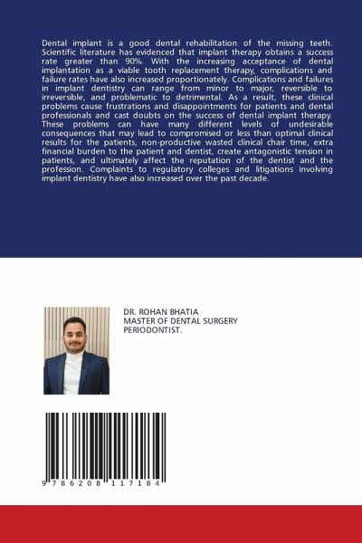 Dental implant is a good dental rehabilitation of the missing teeth. Scientific literature has evidenced that implant therapy obtains a success rate greater than 90%. With the increasing acceptance of dental implantation as a viable tooth replacement therapy, complications and failure rates have also increased proportionately. Complications and failures in implant dentistry can range from minor to major, reversible to irreversible, and problematic to detrimental. As a result, these clinical problems cause frustrations and disappointments for patients and dental professionals and cast doubts on the success of dental implant therapy. These problems can have many different levels of undesirable consequences that may lead to compromised or less than optimal clinical results for the patients, non-productive wasted clinical chair time, extra financial burden to the patient and dentist, create antagonistic tension in patients, and ultimately affect the reputation of the dentist and the profession. Complaints to regulatory colleges and litigations involving implant dentistry have also increased over the past decade.