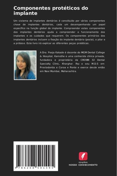Um sistema de implantes dentários é constituído por vários componentes chave de implantes dentários, cada um desempenhando um papel específico na função global do implante. Compreender estes componentes dos implantes dentários ajuda a compreender o funcionamento dos implantes e os cuidados que requerem. Os componentes primários dos implantes dentários incluem a fixação do implante dentário (poste), o pilar e a prótese. Este livro irá explicar as diferentes peças protéticas.