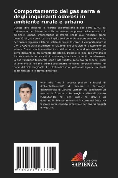 Questo libro presenta le ricerche sull'emissione di gas serra (GHG) dal trattamento del letame e sulla variazione temporale dell'ammoniaca in ambiente urbano. L'applicazione di letame solido può rilasciare grandi quantità di gas serra. Le sue implicazioni sono state scarsamente valutate per quanto riguarda il letame solido di bovini da carne. Il comportamento di CH4 e CO2 è stato esaminato in relazione alle condizioni di trattamento del letame. Questo studio contribuirà a stabilire uno schema di gestione dei gas serra derivanti dal trattamento del letame. L'analisi in linea dell'ammoniaca è stata condotta in due siti di monitoraggio urbano. Le fonti che influenzano la sua variazione temporale sono state valutate sotto diversi aspetti. I livelli di ammoniaca nell'aria urbana presentano tendenze temporali uniche nel corso del ciclo stagionale. I risultati indicano un potenziale legame tra i livelli di ammoniaca e le attività di traffico.