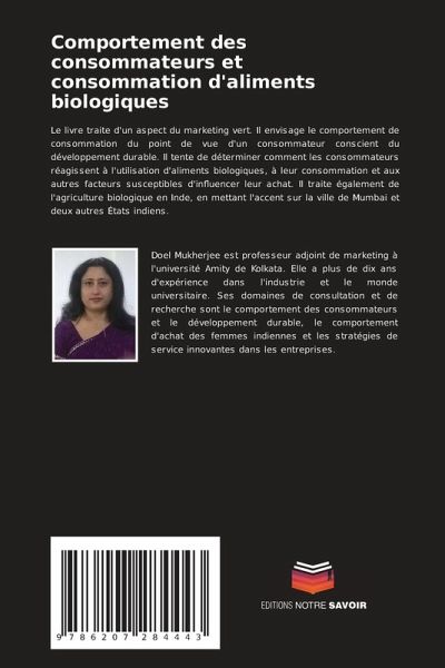 Le livre traite d'un aspect du marketing vert. Il envisage le comportement de consommation du point de vue d'un consommateur conscient du développement durable. Il tente de déterminer comment les consommateurs réagissent à l'utilisation d'aliments biologiques, à leur consommation et aux autres facteurs susceptibles d'influencer leur achat. Il traite également de l'agriculture biologique en Inde, en mettant l'accent sur la ville de Mumbai et deux autres États indiens.