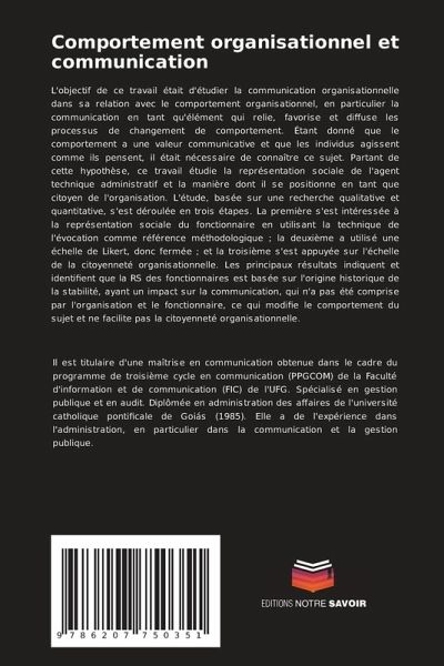 L'objectif de ce travail était d'étudier la communication organisationnelle dans sa relation avec le comportement organisationnel, en particulier la communication en tant qu'élément qui relie, favorise et diffuse les processus de changement de comportement. Étant donné que le comportement a une valeur communicative et que les individus agissent comme ils pensent, il était nécessaire de connaître ce sujet. Partant de cette hypothèse, ce travail étudie la représentation sociale de l'agent technique administratif et la manière dont il se positionne en tant que citoyen de l'organisation. L'étude, basée sur une recherche qualitative et quantitative, s'est déroulée en trois étapes. La première s'est intéressée à la représentation sociale du fonctionnaire en utilisant la technique de l'évocation comme référence méthodologique ; la deuxième a utilisé une échelle de Likert, donc fermée ; et la troisième s'est appuyée sur l'échelle de la citoyenneté organisationnelle. Les principaux résultats indiquent et identifient que la RS des fonctionnaires est basée sur l'origine historique de la stabilité, ayant un impact sur la communication, qui n'a pas été comprise par l'organisation et le fonctionnaire, ce qui modifie le comportement du sujet et ne facilite pas la citoyenneté organisationnelle.