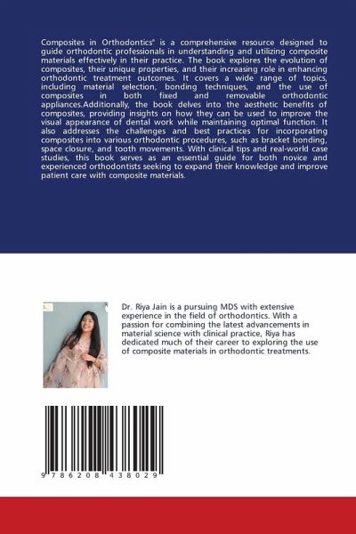 Composites in Orthodontics" is a comprehensive resource designed to guide orthodontic professionals in understanding and utilizing composite materials effectively in their practice. The book explores the evolution of composites, their unique properties, and their increasing role in enhancing orthodontic treatment outcomes. It covers a wide range of topics, including material selection, bonding techniques, and the use of composites in both fixed and removable orthodontic appliances.Additionally, the book delves into the aesthetic benefits of composites, providing insights on how they can be used to improve the visual appearance of dental work while maintaining optimal function. It also addresses the challenges and best practices for incorporating composites into various orthodontic procedures, such as bracket bonding, space closure, and tooth movements. With clinical tips and real-world case studies, this book serves as an essential guide for both novice and experienced orthodontists seeking to expand their knowledge and improve patient care with composite materials.