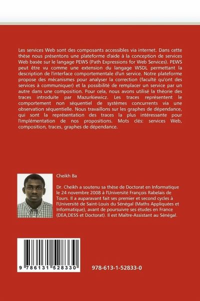 Les services Web sont des composants accessibles via internet. Dans cette thèse nous présentons une plateforme d'aide à la conception de services Web basée sur le langage PEWS (Path Expressions for Web Services). PEWS peut être vu comme une extension du langage WSDL permettant la description de l'interface comportementale d'un service. Notre plateforme propose des mécanismes pour analyser la correction (faculté qu'ont des services à communiquer) et la possibilité de remplacer un service par un autre dans une composition. Pour cela, nous avons utilisé la théorie des traces introduite par Mazurkiewicz. Les traces représentent le comportement non séquentiel de systèmes concurrents via une observation séquentielle. Nous travaillons sur les graphes de dépendance, qui sont la représentation des traces la plus intéressante pour l'implémentation de nos propositions. Mots clés: services Web, composition, traces, graphes de dépendance.