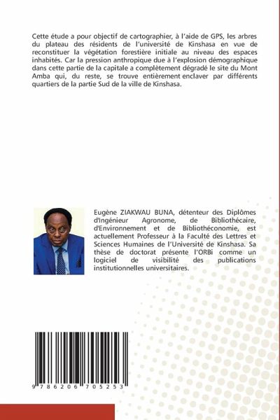 Cette étude a pour objectif de cartographier, à l'aide de GPS, les arbres du plateau des résidents de l'université de Kinshasa en vue de reconstituer la végétation forestière initiale au niveau des espaces inhabités. Car la pression anthropique due à l'explosion démographique dans cette partie de la capitale a complètement dégradé le site du Mont Amba qui, du reste, se trouve entièrement enclaver par différents quartiers de la partie Sud de la ville de Kinshasa.