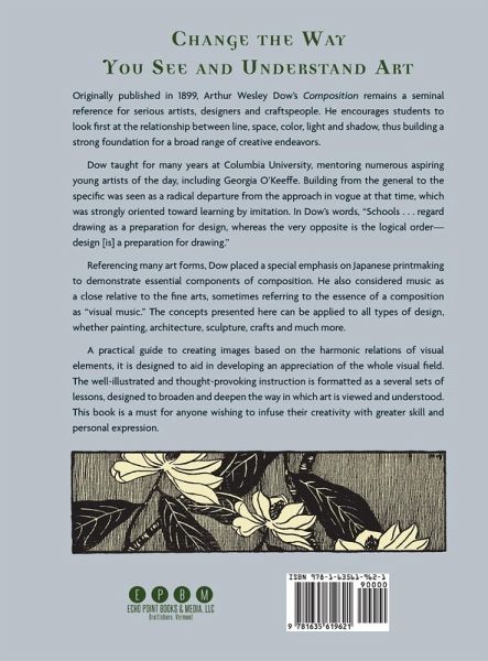 Change the Way You See and Understand Art Originally published in 1899, Arthur Wesley Dow's Composition remains a seminal reference for serious artists, designers and craftspeople. He encourages students to look first at the relationship between line, space, color, light and shadow, thus building a strong foundation for a broad range of creative endeavors. Dow taught for many years at Columbia University, mentoring numerous aspiring young artists of the day, including Georgia O'Keeffe. Building from the general to the specific was seen as a radical departure from the approach in vogue at that time, which was strongly oriented toward learning by imitation. In Dow's words, "Schools . . . regard drawing as a preparation for design, whereas the very opposite is the logical order-design [is] a preparation for drawing." Referencing many art forms, Dow placed a special emphasis on Japanese printmaking to demonstrate essential components of composition. He also considered music as a close relative to the fine arts, sometimes referring to the essence of a composition as "visual music." The concepts presented here can be applied to all types of design, whether painting, architecture, sculpture, crafts and much more. A practical guide to creating images based on the harmonic relations of visual elements, it is designed to aid in developing an appreciation of the whole visual field. The well-illustrated and thought-provoking instruction is formatted as a several sets of lessons, designed to broaden and deepen the way in which art is viewed and understood. This book is a must for anyone wishing to infuse their creativity with greater skill and personal expression. This book is also available from Echo Point Books as a paperback (ISBN 1635619637).