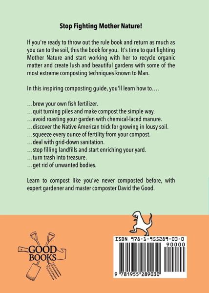 Composting is so simple anyone can do it. Nature does it all the time! Don't get caught up in big lists of dos and don'ts - rediscover the joy of compost in this brilliant and entertaining book by David The Good. Stop sending potential soil fertility to the landfill and feed your garden for free! You can compost: Meat Leftovers Bread Logs Cake Yard Waste Lasagna Fish Bones Your Enemies ...and lots more! Learn the secrets of composting everything with David The Good. If you're ready to throw out the rule book and return as much as you can to the soil, Compost Everything is the book for you. It's time to quit fighting Mother Nature and start working with her to recycle organic matter and create lush and beautiful gardens with some of the most extreme composting techniques known to Man! These easy composting tricks will turn you into a pro in no time - and you'll have fun along the way.