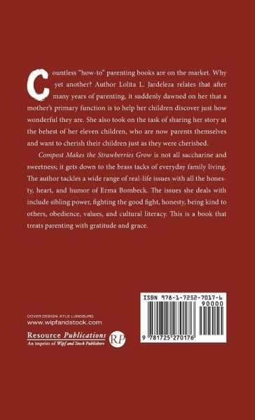 Countless ""how-to"" parenting books are on the market. Why yet another? Author Lolita L. Jardeleza relates that after many years of parenting, it suddenly dawned on her that a mother's primary function is to help her children discover just how wonderful they are. She also took on the task of sharing her story at the behest of her eleven children, who are now parents themselves and want to cherish their children just as they were cherished. Compost Makes the Strawberries Grow is not all saccharine and sweetness; it gets down to the brass tacks of everyday family living. The author tackles a wide range of real-life issues with all the honesty, heart, and humor of Erma Bombeck. The issues she deals with include sibling power, fighting the good fight, honesty, being kind to others, obedience, values, and cultural literacy. This is a book that treats parenting with gratitude and grace.