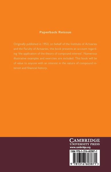 Originally published in 1953, on behalf of the Institute of Actuaries and the Faculty of Actuaries, this book presents an account regarding 'the application of the theory of compound interest'. Numerous illustrative examples and exercises are included. This book will be of value to anyone with an interest in the nature of compound interest and financial history.