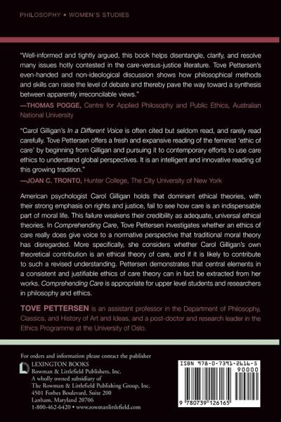 In Comprehending Care, Tove Pettersen subjects the ethics of care, as advanced by Carol Gilligan, to a moral-philosophical examination. More precisely, she extracts the philosophical foundation in this ethics, probes its possible implications for moral theory of a more traditional stamp, and explores its normative plausibility. Pettersen exposes several misconceptions of Gilligan's work.
