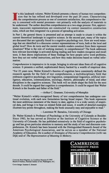 In this landmark volume, Walter Kintsch presents a theory of human text comprehension that he has refined and developed over the past 20 years.