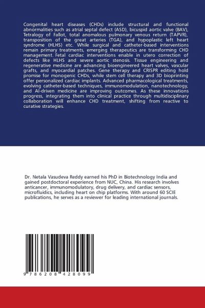 Congenital heart diseases (CHDs) include structural and functional abnormalities such as atrial septal defect (ASD), bicuspid aortic valve (BAV), Tetralogy of Fallot, total anomalous pulmonary venous return (TAPVR), transposition of the great arteries (TGA), and hypoplastic left heart syndrome (HLHS) etc. While surgical and catheter-based interventions remain primary treatments, emerging therapeutics are transforming CHD management. Fetal cardiac interventions enable in utero correction of defects like HLHS and severe aortic stenosis. Tissue engineering and regenerative medicine are advancing bioengineered heart valves, vascular grafts, and myocardial patches. Gene therapy and CRISPR editing hold promise for monogenic CHDs, while stem cell therapy and 3D bioprinting offer personalized cardiac implants. Advanced pharmacological treatments, evolving catheter-based techniques, immunomodulation, nanotechnology, and AI-driven medicine are improving outcomes. As these innovations progress, integrating them into clinical practice through multidisciplinary collaboration will enhance CHD treatment, shifting from reactive to curative strategies.