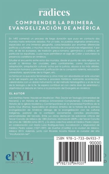 En 1492 comenzó un proceso de larga duración que puso en contacto dos mundos hasta entonces aislados. Por un lado, los pueblos originarios americanos, esparcidos en una inmensa geografía, caracterizados por enormes diferencias políticas y culturales, y muchas veces dotados de una profunda religiosidad. Y por otro, el de los europeos, de tradición greco-romana, germánica y católica, en particular los españoles, cuyos reyes permitieron el viaje de Colón y sostuvieron la presencia castellana en América. Estudiar el encuentro entre estos dos mundos, desde el punto de vista religioso, es acudir a términos tan cruciales, pero contrastantes, como inculturación, adaptación, aniquilación cultural, lucha por la justicia, abusos a los más débiles, formación humana y profesional, justificación de la conquista violenta, educación universitaria, apariciones de la Virgen, etc. La forma en la que estos fenómenos (y otros más) son abordadas en este volumen es la del respeto por los hechos y procesos históricos realmente acontecidos, valorándolos con un doble instrumento: el del método historiográfico y el de la luz de la teología y de la fe. Se espera contribuir así con cierta dosis de serenidad y objetividad al debate en torno a la plantación del Evangelio en América.